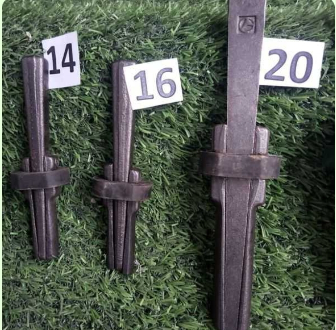 Se les llama cuña de cantero de uso manual que utiliza una comba para impactar la cuña de metal en los agujeros realizados en la piedra, partiendo así la piedra.